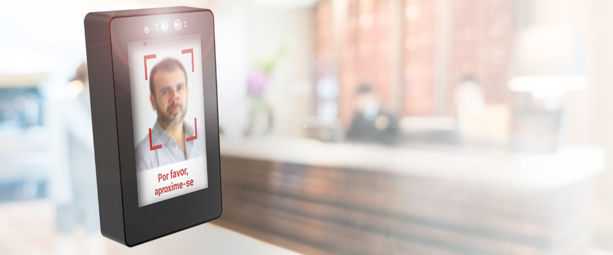 Cutting-edge point-of-sales (POS) terminal equipped with facial recognition technology designed.